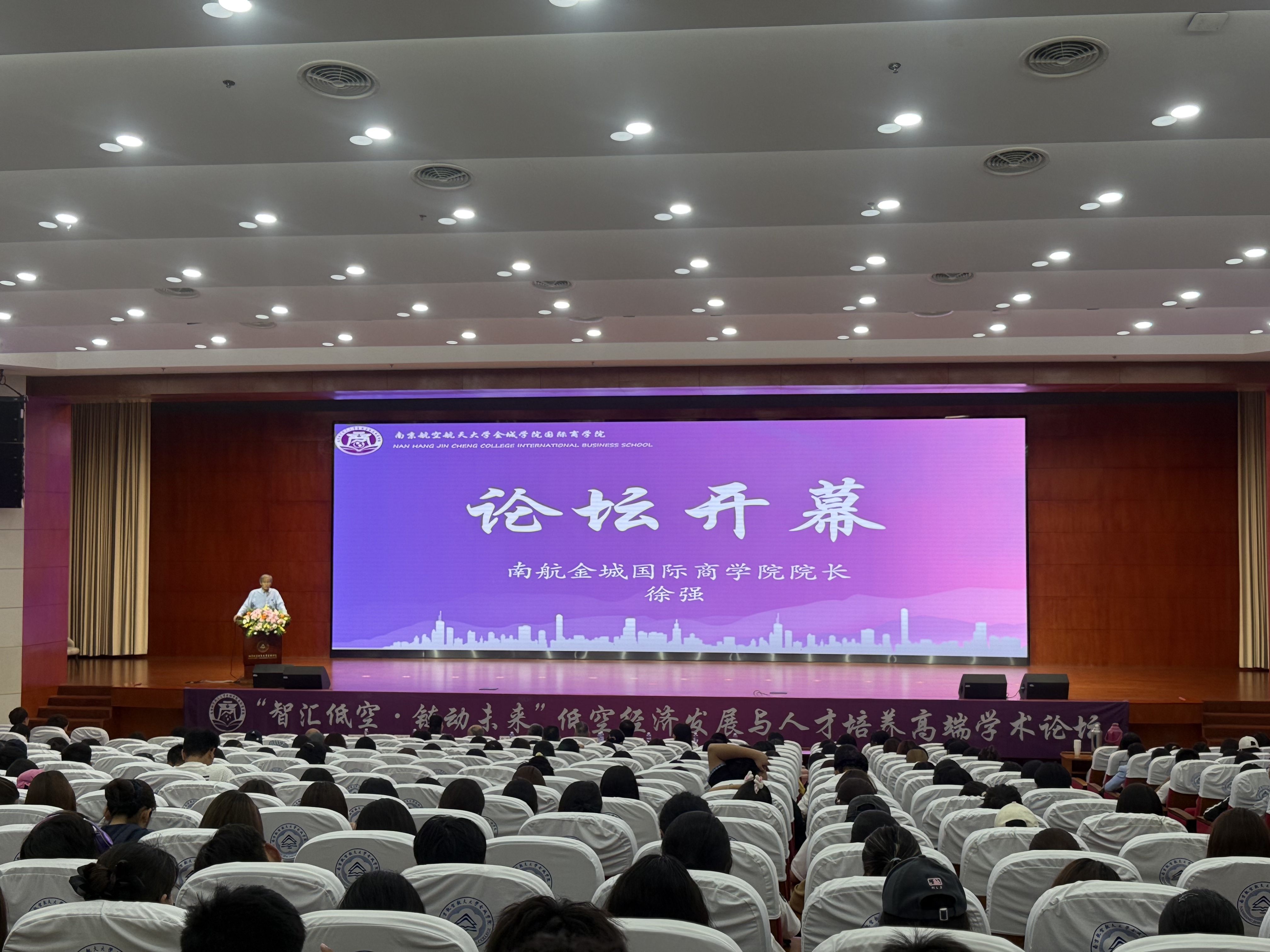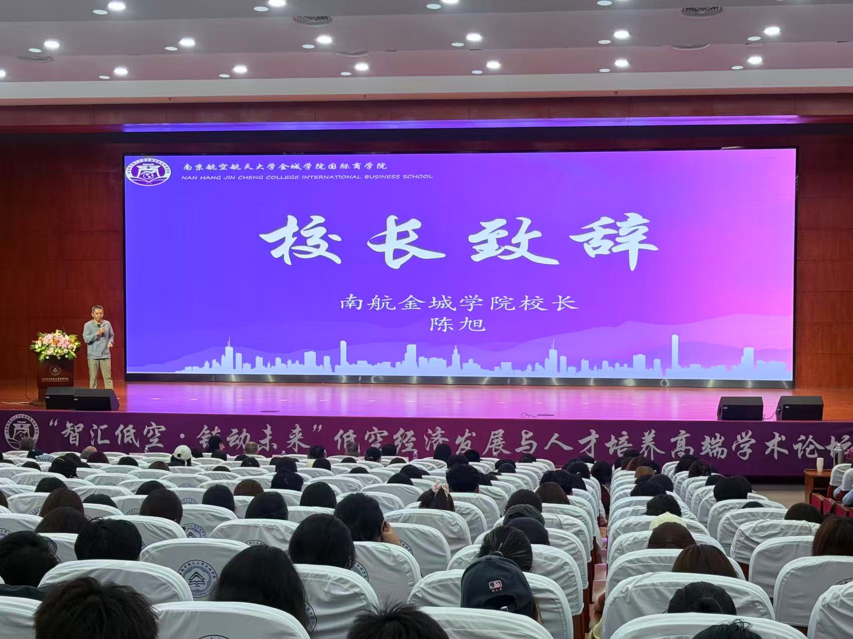 论坛以国际商学院徐强院长的精彩发言开启序幕,紧接着,南京航空航天大学金城学院陈旭校长登台致欢迎辞。他代表学校对远道而来的各位嘉宾表示热烈欢迎和诚挚感谢。陈校长指出,当前,低空经济作为国家战略性新兴产业,正迎来前所未有的历史机遇。从国家层面到江苏省、南京市,均已将低空经济列为重点发展方向,积极布局基础设施、适航审定、应用场景和人才培养体系,全力打造长三角低空经济创新高地。他强调,学校始终坚持以服务国家战略和区域经济发展为导向,积极构建产学研用一体化的人才培养体系,期待以此次论坛为契机,深化校企合作,共同探索低空经济领域人才培养新路径。