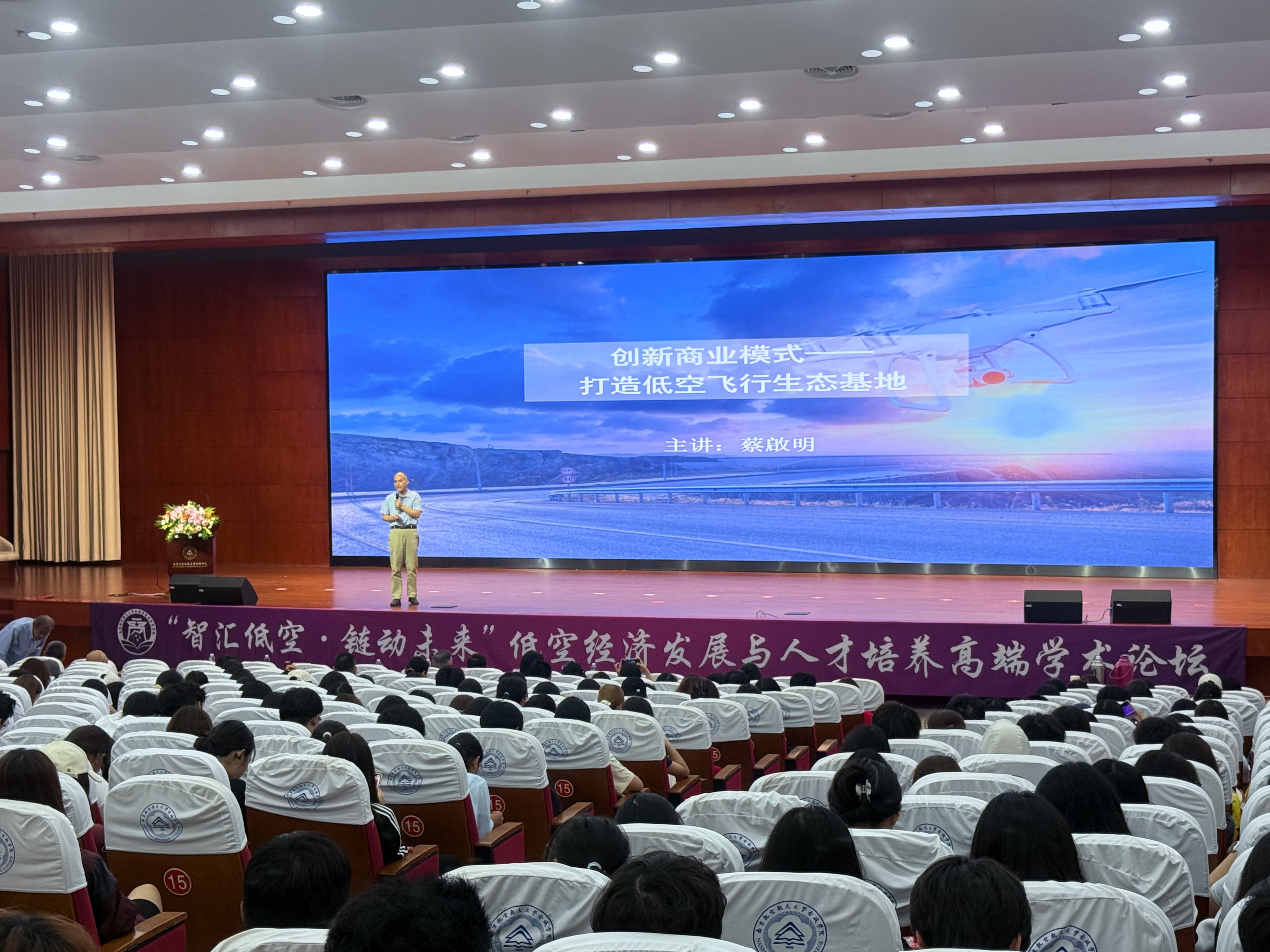 2025年9月26日下午,由国际商学院主办的“智汇低空•链动未来——低空经济发展与人才培养高端学术论坛”在图书馆206报告厅隆重举行,现场师生参与人数达640人。论坛以“把握低空新质动力,构筑产教融合生态”为主题,汇聚了来自高校、科研机构与行业领军企业的权威专家、学者及企业代表,围绕低空经济的政策引领、技术创新、商业模式、安全适航与人才培养等关键议题展开深度探讨,为推动低空经济高质量发展与人才培养体系构建贡献智慧与力量。