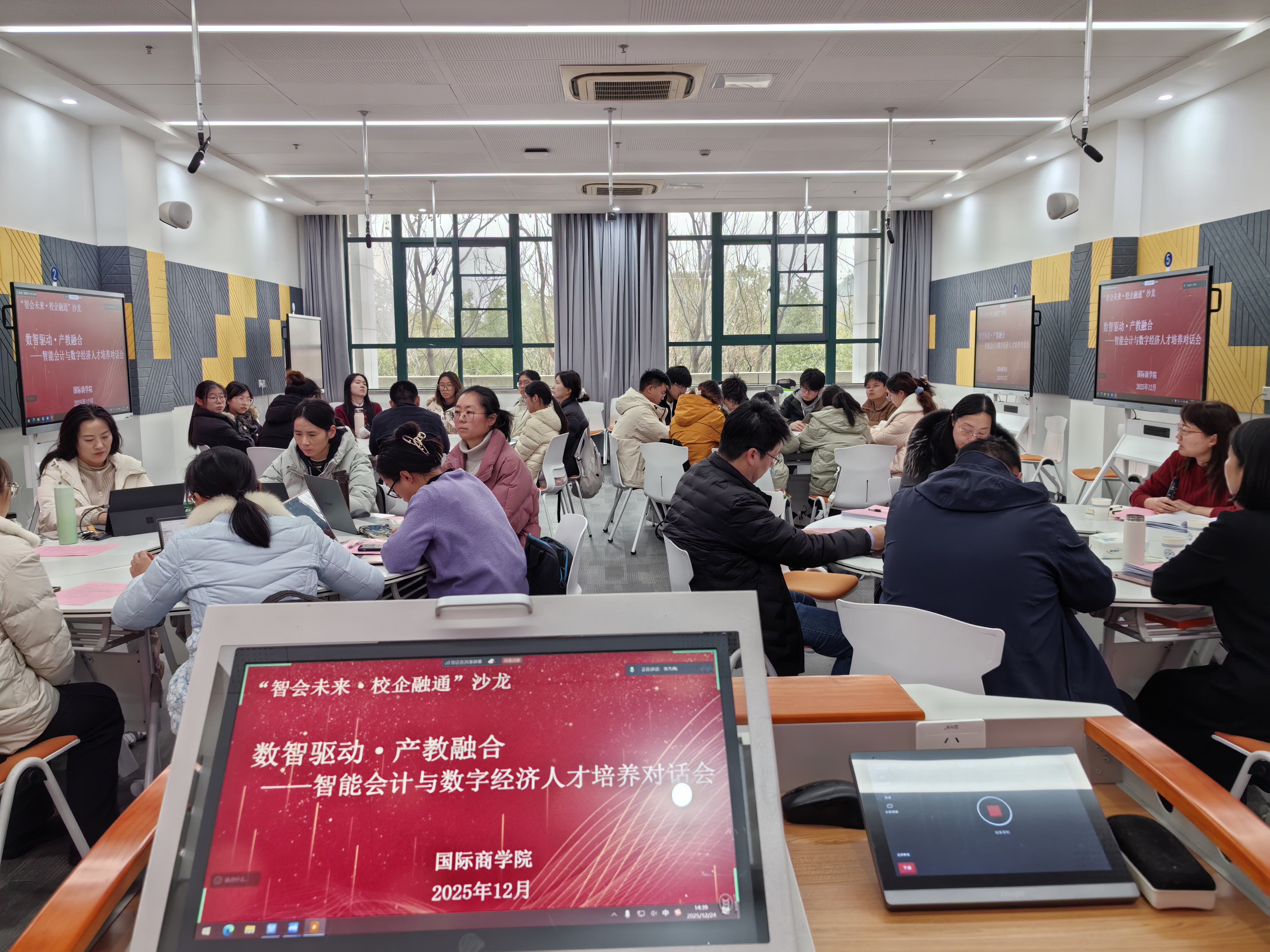 2025年12月24日下午,国际商学院联合南航金城智能会计产业学院及数字经济产业学院主办的“智会未来·校企融通”沙龙在图书馆智慧教室T-N205成功举行。本次沙龙以“数智驱动·产教融合——智能会计与数字经济人才培养对话会”为主题,邀请学界专家、企业精英、学院师生代表,围绕数字经济时代商科人才培养的核心议题开展深度研讨。活动由国际商学院院长姚志琴主持,副院长钱婷婷全程参与交流。