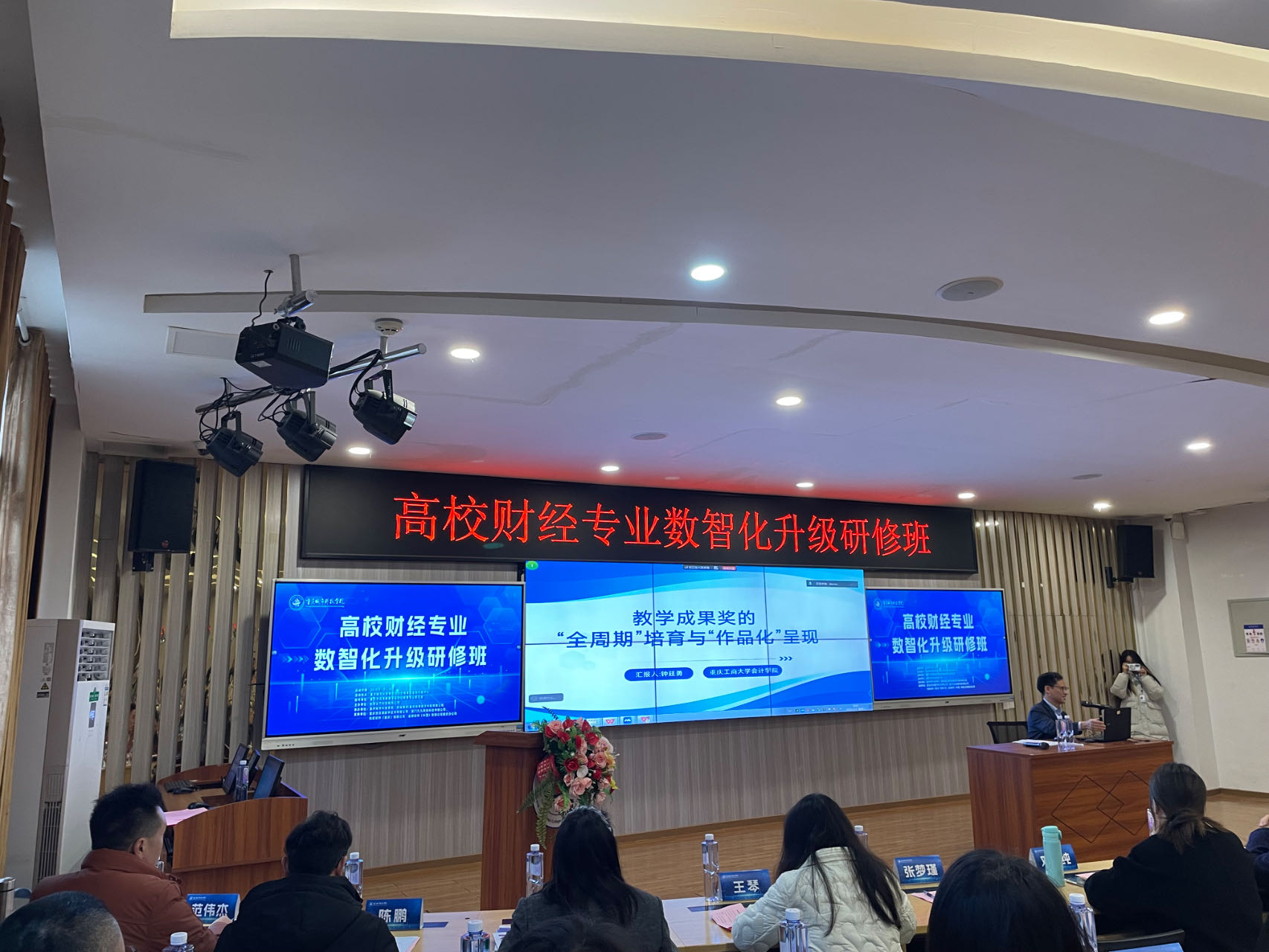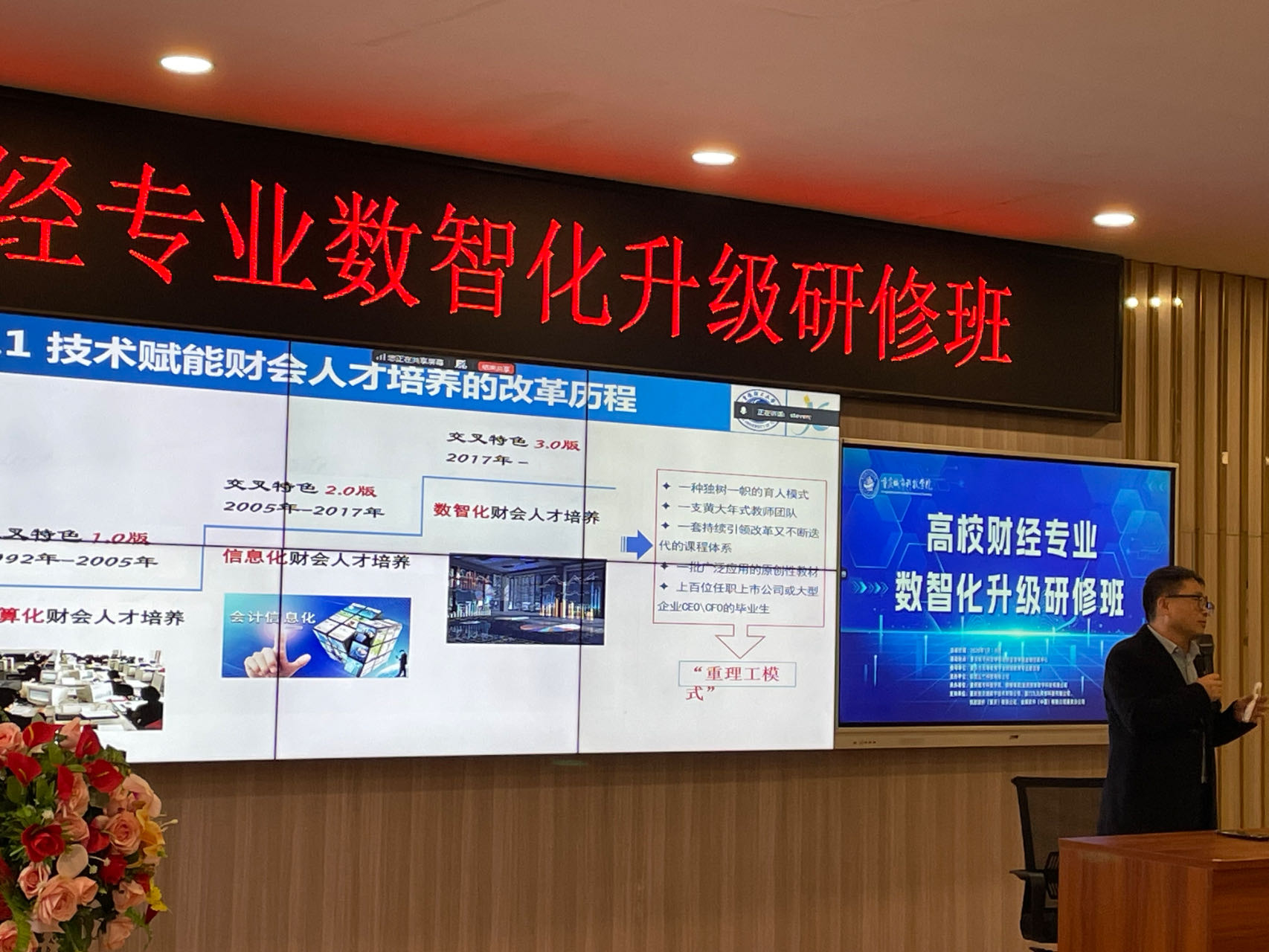 研修班的主题报告环节高瞻远瞩,紧扣数字经济时代财经教育改革的核心要义,为参训教师提供了宏观视野与理论指引。重庆工商大学会计学院院长钟廷勇教授以《数字化背景下产教深度融合的财经素质财会人才培养模式》为题,结合高校与企业合作的丰富实践,深入剖析了产教融合视角下财经素质链的数字化赋能路径,其提出的“人才培养与产业需求同频共振”理念,与我校智能会计产业学院“产教协同、知行合一”的建设思路高度契合,为我院进一步优化人才培养方案提供了重要参考。