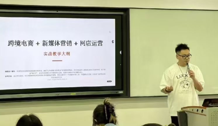 为紧跟数字贸易发展浪潮,对接跨境电商行业紧缺岗位需求,破解传统教学 “理论多、实操弱” 的痛点,2026年4月15日,国际商学院、数字经济产业学院重磅开启“跨境启航・数智未来”产教融合实践工作坊第2期。本次工作坊以“《跨境电商 + 新媒体营销 + 网店运营》实战”为核心主题,特邀行业资深专家授课,面向2023级国际经济与贸易专业学生开展以职场需求为导向,深度打通跨境电商、新媒体引流与网店全流程运营三大核心模块,致力于培养 “外贸 + 电商 + 营销” 复合型应用人才,精准对接企业热门岗位需求,为学生搭建起课堂与行业前沿对接的优质平台。