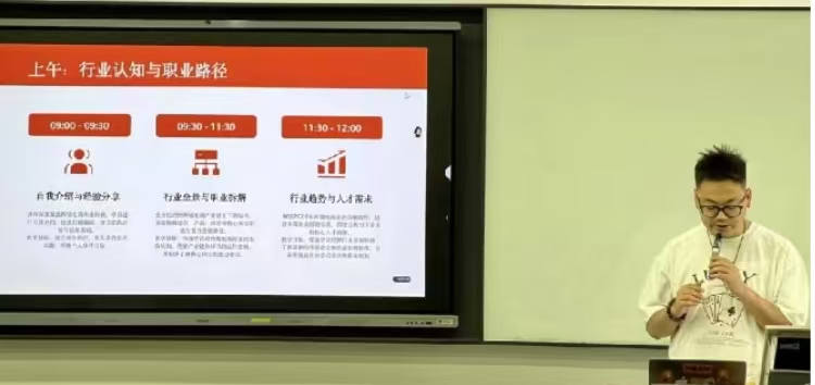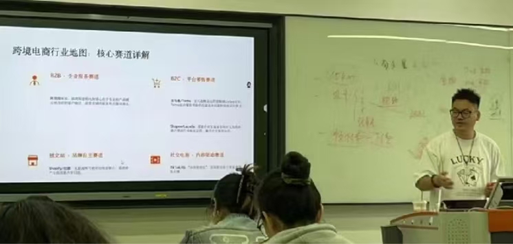 本次工作坊讲座打破传统理论教学模式,采用 “认知 — 拆解 — 实战 — 复盘” 闭环教学体系,强调 “做中学、练中会”,将真实案例解析、平台模拟运营、项目化实战训练,让学生在沉浸式学习中掌握选品、上架、推广、引流、转化、复盘等全流程运作融入课堂。在理论介绍环节,周通专家围绕电子商务行业发展与未来趋势展开系统讲解,结合 2026 年最新行业趋势,覆盖 B2B/B2C 平台、独立站、TikTok Shop 等主流赛道,从行业认知、岗位拆解、选品运营、社媒引流到物流履约、合规风控全链路讲解,让学生快速掌握真实商业场景下的实操能力。